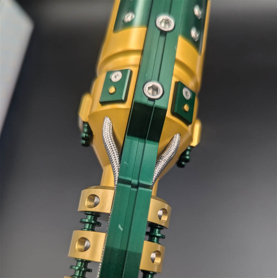 Once upon a time, in a galaxy not so far away, a collaboration between Ace from Orbital Machining (now with TCSS) and Slothfurnace gave birth to one of the most intricate and unique hilts to ever exist - the Black Mamba, with it's 167 machined parts (224 per hilt in total) that created a masterpiece that still stands nearly unmatched today. Over the course of nine years, the Black Mamba made its presence known as the Twisted Fang lightsaber in the Old Republic MMO, gathering a huge following of fans. This led us to embark on the challenge of crafting a worthy sibling. Our aim was not to replicate the Black Mamba or create just a v2, but to design something new, affordable (relatively), and yet retain the essence of the original masterpiece that had captivated everyone's attention for so long.